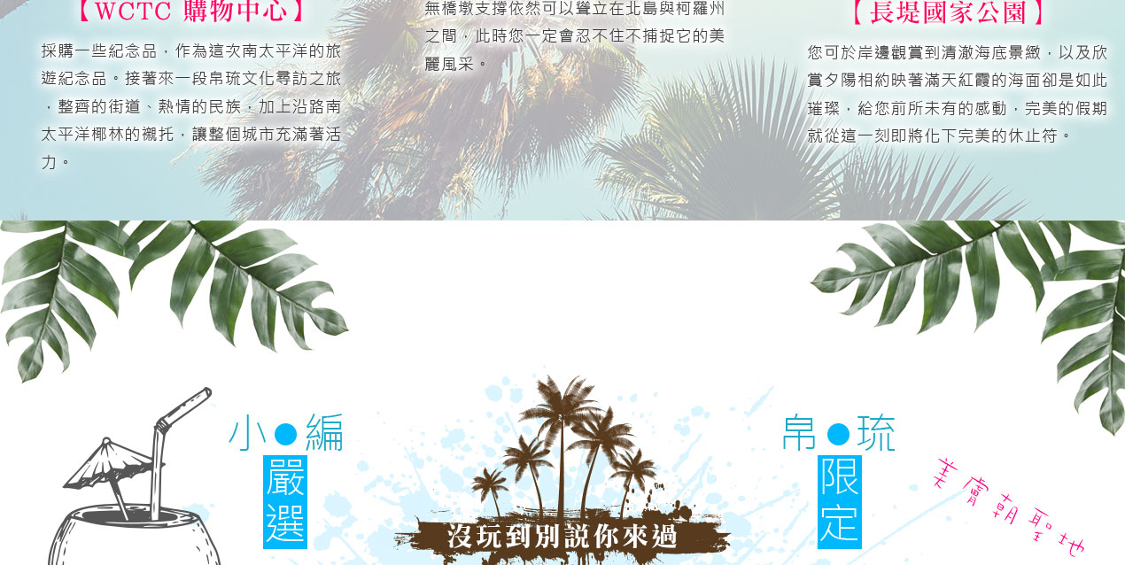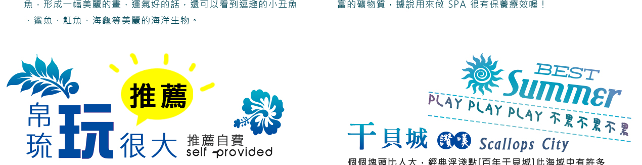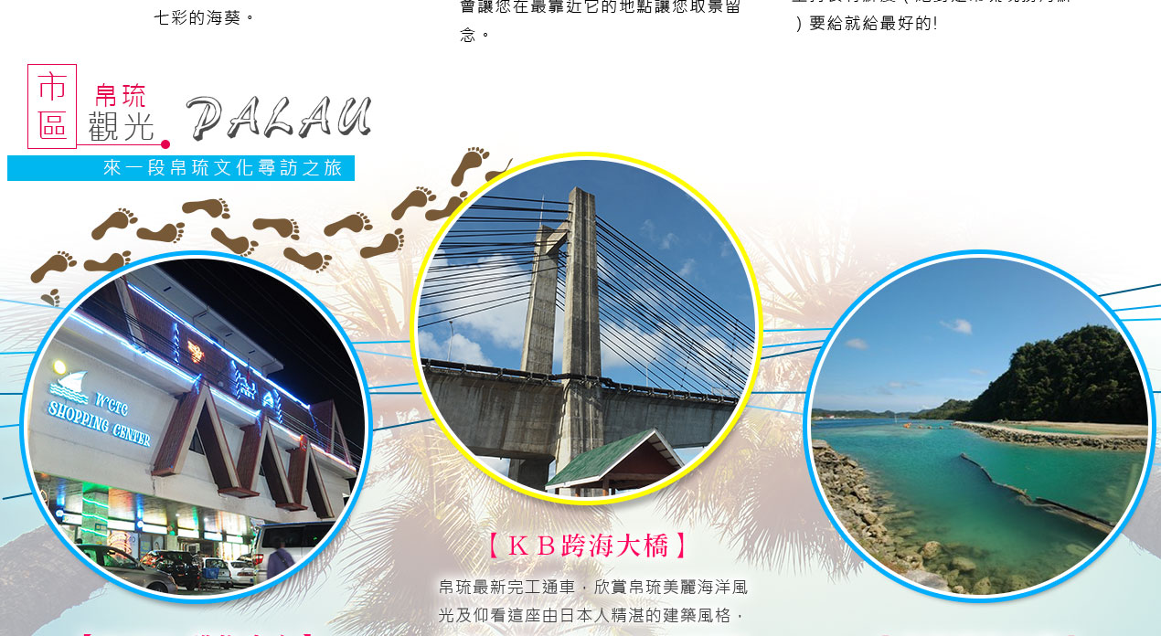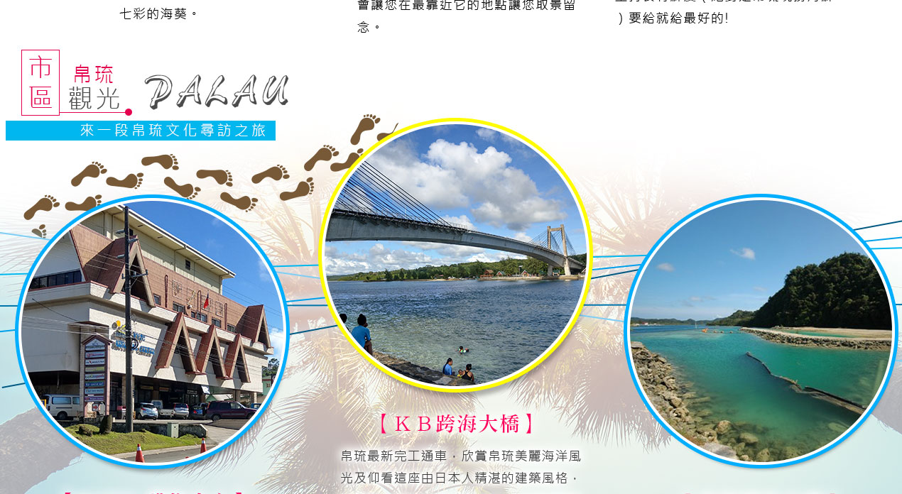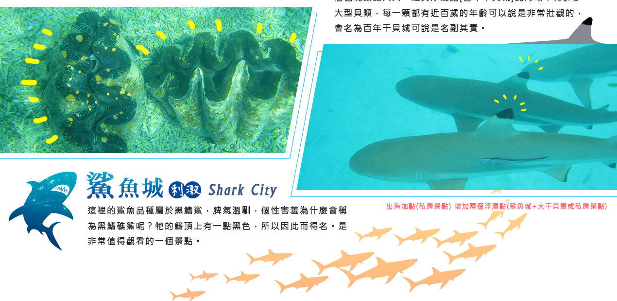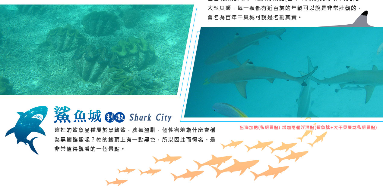 搭乘快艇前往藍耀石沙灘,首先由專業又熱情的導遊親切的教導如何正確使用浮潛裝備及水上安全事項,就算怕水或是不會游泳的你也能輕鬆自在快樂的浮潛,您可以放鬆心情在此練習浮潛或者愜意的在島上漫步拍照,等待我們精心為您準備的無人島原始海陸BBQ午餐。特別安排日式餐盒及幾樣現烤的海陸料理以及現煮的美味鮮魚湯。雖然不是甚麼高檔佳餚,也沒有華麗的擺盤,但能在藍天闢海蒼穹的無人島享用午餐,肯定是一種難以忘懷的體驗。餐後續搭乘快艇穿梭在藍天碧海中青蔥的小島,撒落在藍色海洋當中,就想一顆顆綠色珍珠一般,構成了美麗的《海洋花園》奇景。硬珊瑚公園是一處可見到底但踩不到底的浮潛地點,可以看到一片由硬珊瑚組成的海域,往較深的地方信運的話還可能發現俗稱蘇美魚的《龍王鯛》,也就是帛琉的國寶魚。再前往軟瑚瑚區,以浮潛方式,即可看到五彩繽紛的軟珊瑚,隨著海浪搖曳生姿,依附著岩壁而生。玫瑰珊瑚公園:壯麗珊瑚呈玫瑰形狀,格外的巨大且艷麗,並有熱帶魚群穿梭其間,嬉戲追逐,還可將吃剩下的BBQ,輕握手中享受魚群爭食的快樂;腦紋石珊瑚是一個個奇特的腦紋珊瑚附著在海底斷層上,真是美不勝收;最後前往山中湖,親眼目賭第二次世界大戰被擊沈的船艦殘骸,記錄著歷史的遺跡。在一連串美麗的海洋花園浮潛活動當中,讓各位貴賓大為讚嘆原來海景的美景更勝於陸地景觀,在意猶未盡的同時,我們返航的時間也悄悄的到來,乘著微風,快艇駛往碼頭,結速了這美妙的一天。暢快淋漓沐浴之後,隨後我們前往帛琉當地餐館享用生猛的雙龍蝦V.S雙螃蟹超級海鮮大餐,每桌均為您呈上帛琉本港的生猛龍蝦及紅樹林螃蟹,絕非一般餐館的冷凍進口龍蝦及螃蟹所能取代,並讓您有機會品嚐到當地最有名,且是愛美女性最愛的【水果美容蝙蝠湯】喔!再加上各式各樣的海鮮佳餚,保證讓您補足今日所有體力,讓您再次生龍活虎。華燈初上,今晚特別為您準備了帛琉獨特的舒療按摩三十分鐘,好好為您放鬆緊繃的全身筋骨,讓您ㄧ夜好眠,期待明日精采的海洋之旅續集。