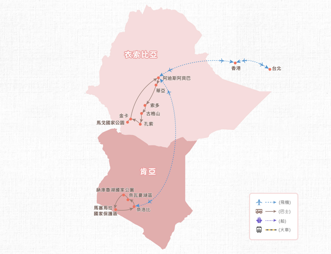| 馬賽馬拉-奈洛比(食肉族餐廳) -機場/阿迪斯阿貝巴/香港 |